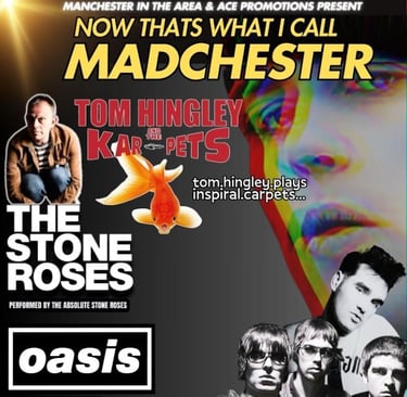 The Madchester Experience recreate the iconic sounds of BRIT bands such as THE STONE ROSES, THE HAPPY MONDAYS, OASIS, THE VERVE, THE FARM,JAMES, THE CHARLATANS, INSPIRAL CARPETS and many more…