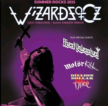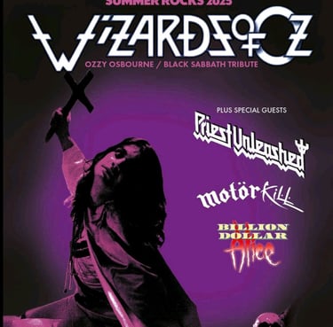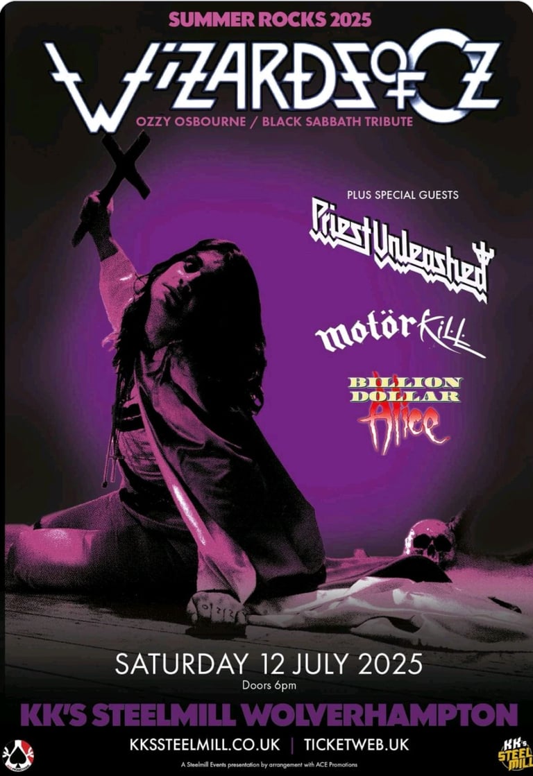Summer Rocks at KK`s Steel Mill, Wolverhampton. If you cannot afford Villa Park then come to us at KK`s Steel Mill and see Wizards of Oz a tribute to Ozzy Osborne and Black Sabbath plus special guests, Priest Unleashed, Billion Dollar Alice and Motorkill